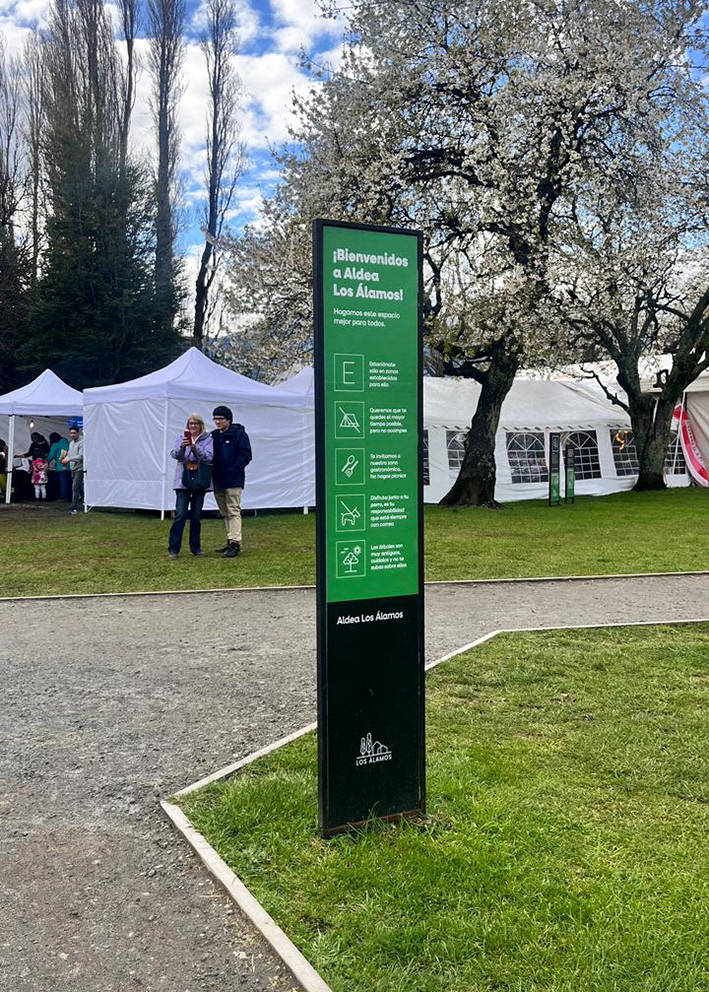 Diseño del sistema de señalización del Centro Comercial Los Álamos, ubicado en el centro de Pucón, con el objetivo de crear una experiencia cercana, clara y coherente en el contexto de su crecimiento sostenido y sus planes de expansión.