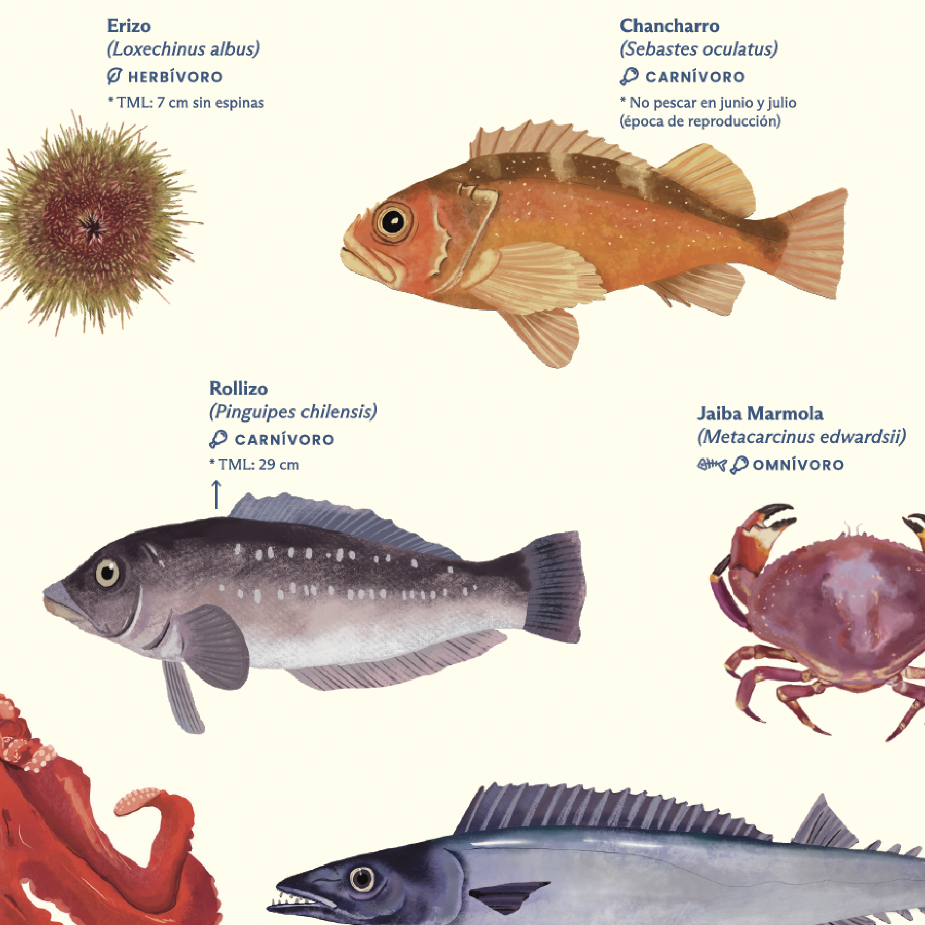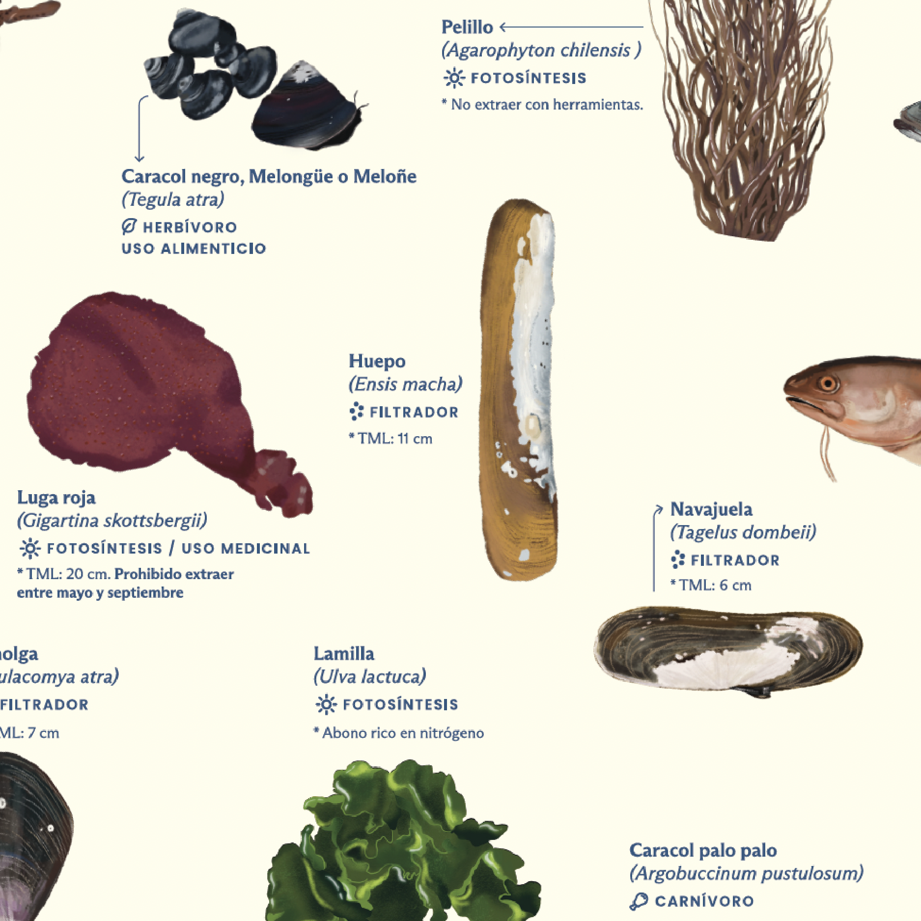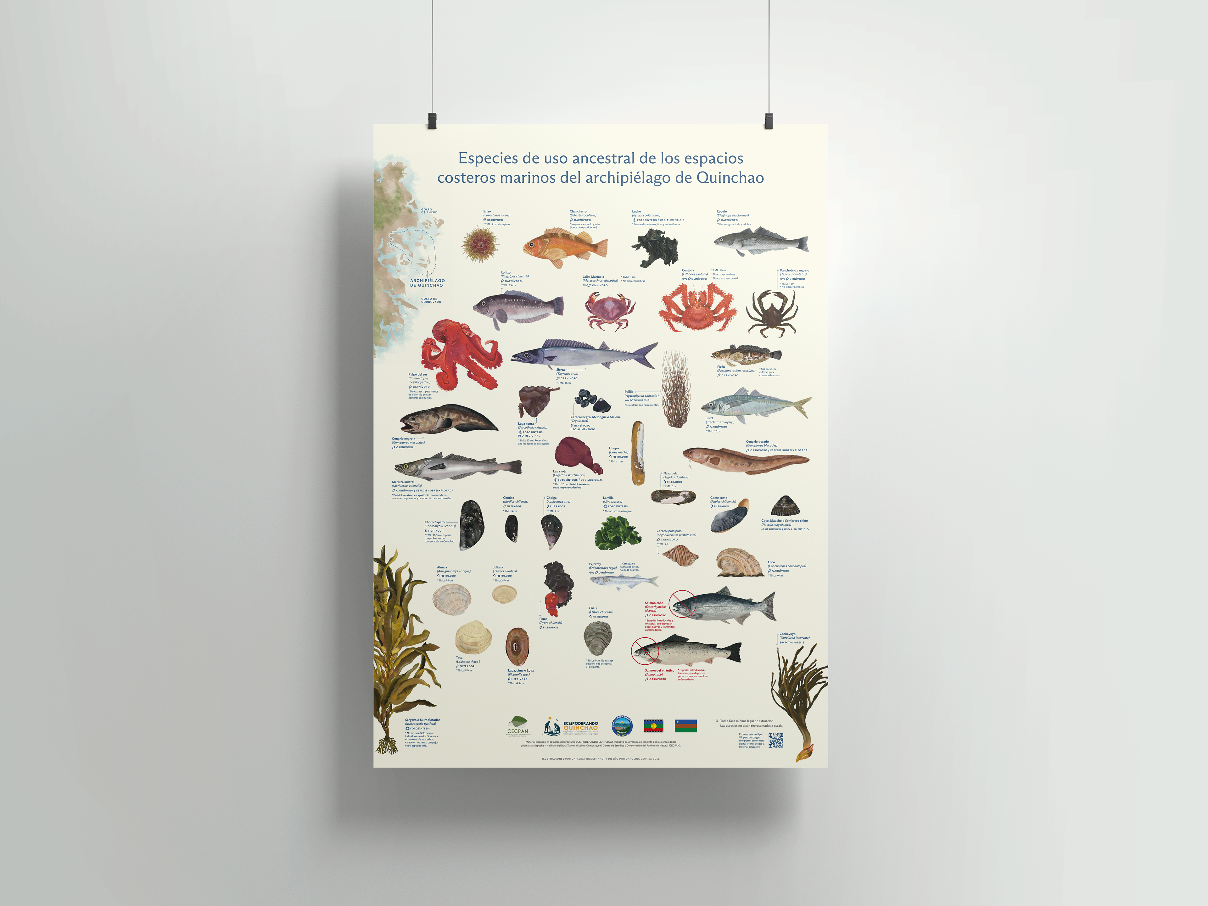 Además de la regla, se diseñó un afiche que muestra otras especies marinas de uso ancestral presentes en el Archipiélago de Quinchao.