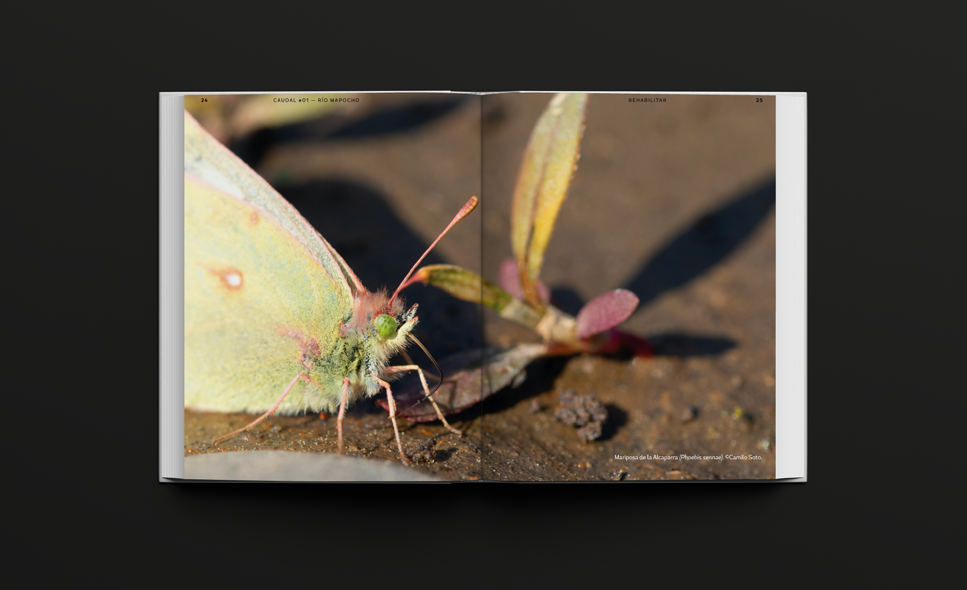 En esta primera edición de la revista, el protagonismo se lo lleva el Río Mapocho, el importantísimo cuerpo de agua que sustenta a la Región Metropolitana y que por años ha tenido la reputación de río sucio y sin vida. Es esa percepción la que esta edición de 'Caudal' busca cambiar, para mostrar la verdadera biodiversidad que no vemos pero que está ahí, a unos pasos de la ruidosa ciudad. Las primeras páginas muestran en blanco y negro lo que comunmente entendemos del Mapocho, para luego mostrarnos a todo color la riqueza que podemos encontrar, su historia, poemas y versos, la gran naturaleza que sostiene y finalmente una guía de campo que invita a explorar este valioso territorio.