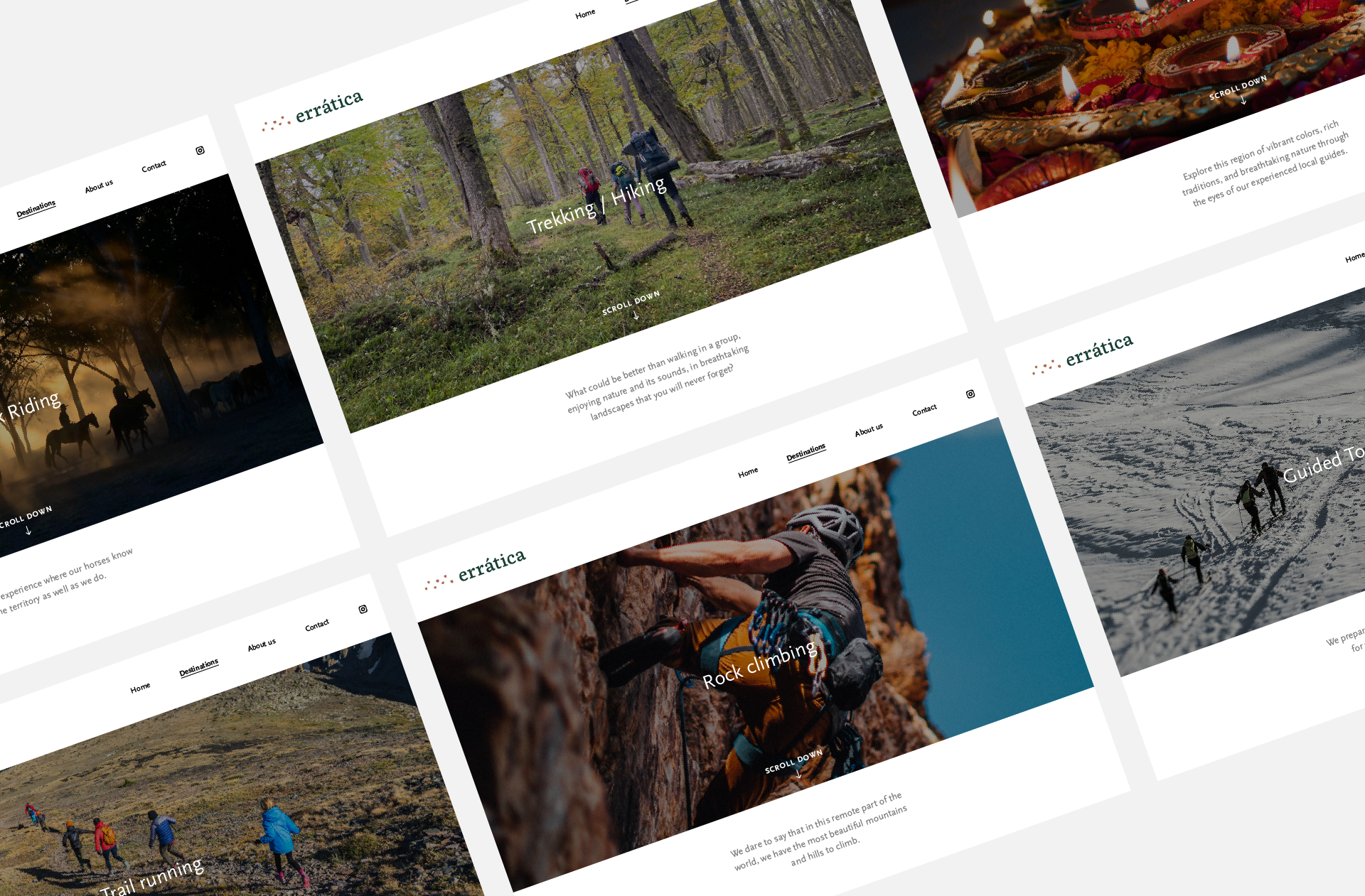 El diseño del sitio fue un trabajo colaborativo junto al equipo de Errática, donde se buscó plasmar de forma coherente la visión y personalidad de la marca. A lo largo del proceso se realizaron distintas propuestas visuales y estructurales, que fueron afinándose en conjunto según el avance del proyecto semana a semana.